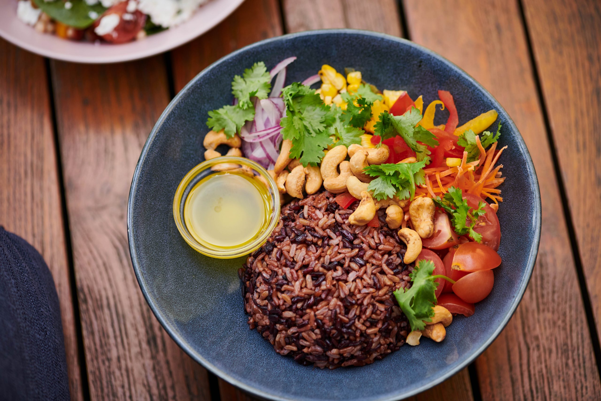 Rice, cashes and veg bowl