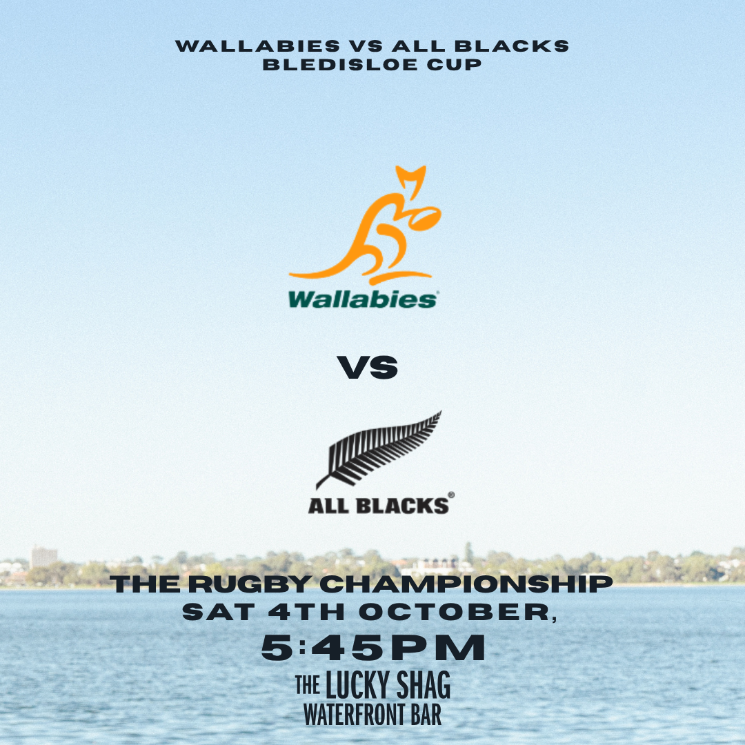 Wallabies vs Blacks live screening promo at Lucky Shag Bar